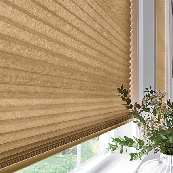 Pleated Shades with Cordless Lift: Spring Bloom, Sun-Kissed Olive 0681